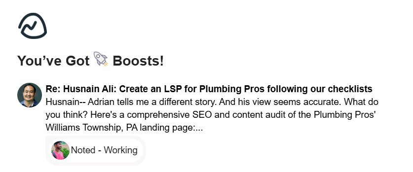 When you boost something, it sends a private alert only to me. No one else on the team sees it. That means if you’re responding to a comment or trying to acknowledge a task, you’ve taken that communication out of the team workflow.